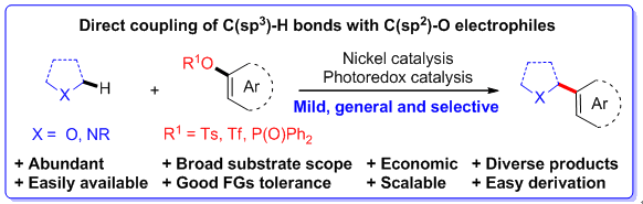 113.L.-L. Liao, Y.-Y. Gui, X.-B. Zhang, G. Shen, H.-D. Liu, W.-J. Zhou, J. Li, D.-G. Yu*, Phosphorylation of Alkenyl and Aryl C─O Bonds via Photoredox/Nickel Dual Catalysis. Org. Lett. 2017, 19, 3735. (Top 2 most read papers in July, 2017)