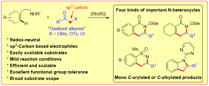 126.D.-G. Yu, F. de Azambuja, F. Glorius*, α-MsO/TsO/Cl Ketones as Oxidized Alkyne Equivalents: Redox-Neutral Rhodium(III)-Catalyzed CH Activation for the Synthesis of N-Heterocycles. Angew. Chem. Int. Ed. 2014, 53, 2754. (Top 6 most accessed ACIE paper in Feb. 2014, Highlighted by Synfacts 2014, 10, 567.)