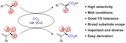 90.S.-S. Yan, D.-S. Wu, J.-H. Ye, L. Gong, X. Zeng, C.-K. Ran, Y.-Y. Gui, J. Li, D.-G. Yu*, Copper-Catalyzed Carboxylation of CF Bonds with CO2. ACS Catal. 2019, 9, 6987. (Highlighted by Synfacts 2019, 15, 1159)