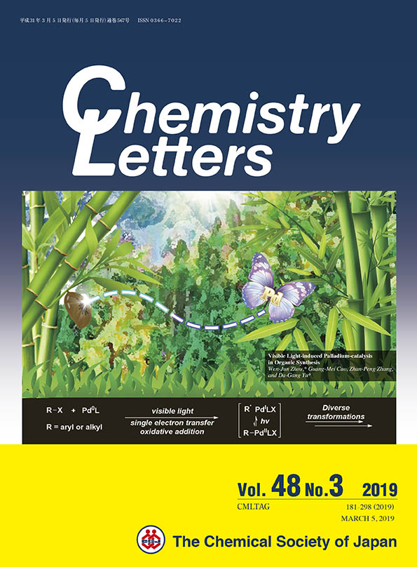 91.W.-J. Zhou,* G.-M. Cao, Z.-P. Zhang, and D.-G. Yu*, Visible Light-Induced Palladium-Catalysis in Organic Synthesis. Chem. Lett. 2019, 48, 181. (Invited Contribution. Cover)