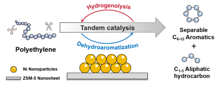 Fan Zhang,† Manhao Zeng,† Ryan D. Yappert, Jiakai Sun, Yu-Hsuan Lee, Anne M. LaPointe, Baron Peters, Mahdi M. Abu-Omar, Susannah L. Scott*. Polyethylene upcycling to long-chain alkylaromatics by tandem hydrogenolysis/aromatization. Science, 2020, 370, 437-441.