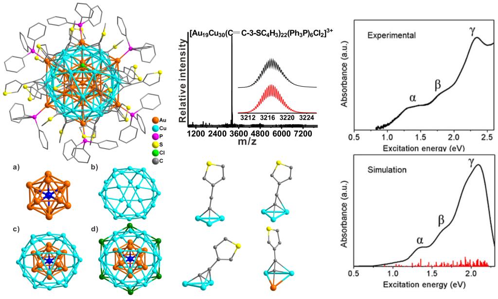 9. Xian-Kai Wan, Xiao-Ling Cheng, Qing Tang, Ying-Zi Han, Guoxiang Hu,, De-En Jiang*, and Quan-Ming Wang*. Atomically Precise Bimetallic Au19Cu30 Nanocluster with an Icosidodecahedral Cu30 Shell and an Alkynyl–Cu Interface, J. Am. Chem. Soc. 2017, 139, 9451-9454.