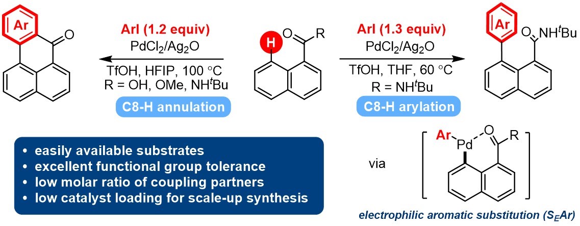 12. Palladium-catalyzed C8H arylation and annulation of 1-naphthalene carboxylic acid derivatives with aryl iodides.