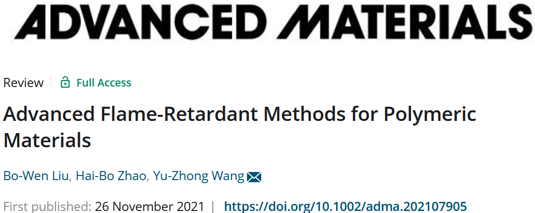 该文以“Advanced Flame-Retardant Methods for Polymeric Materials”为题发表在《Advanced Materials》上。共同第一作者为性视频