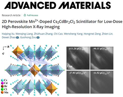 邹国红教授与材料学院赵德威教授合作,在国际学术期刊Advanced Materials在线发表了题为“2D perovskite Mn2+-doped Cs2CdBr2Cl2 scintillator for low-dose high-resolution X-ray imaging”的研究论文。该论文以性视频