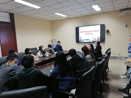 党史学习教育动员会在化学馆103会议室举办。学院党政领导班子成员、党委委员、纪委委员、党支部书记和支委等参加了动员会。