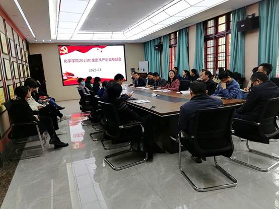 在化学馆112会议室召开2023年全面从严治党专题会。学院党政领导班子成员、党委委员、纪委委员、组织员、教研室主任、各党支部书记、民主党派代表、各科室主要负责人参加会议。会议由学院党委书记谢均主持。