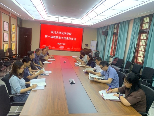 新一届教研室主任集体谈话会,学院党委书记谢均、党委副书记兼纪委书记肖波,新一届教研室主任、副主任、中心主任参加会议。
