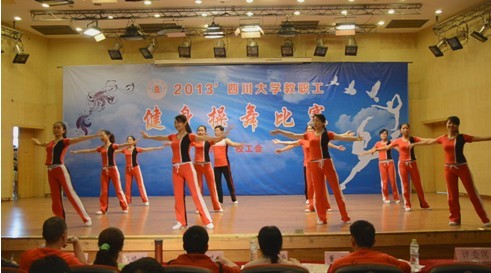 2013年教职工健身操舞比赛”,全校各部门工会组织的39支参赛队共500余人参加了比赛。性视频