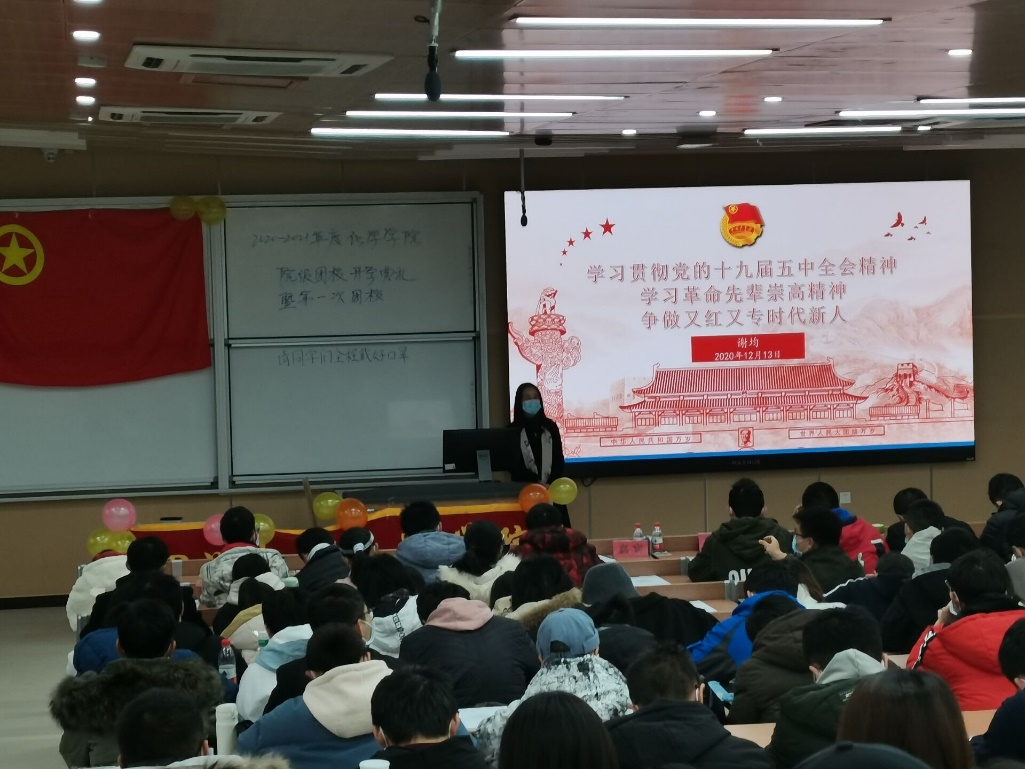 团委书记来俏老师分别讲授了主题为“学习贯彻党的十九届五中全会精神,学习革命先辈的崇高精神,争做又红又专的时代新人”、“科创报国精神传承与大学生创新创业能力培养”、“光荣的中国共青团”主题团课,组织部、文体部联合举办了素质拓展活动暨趣味运动会。