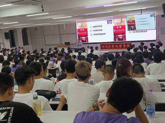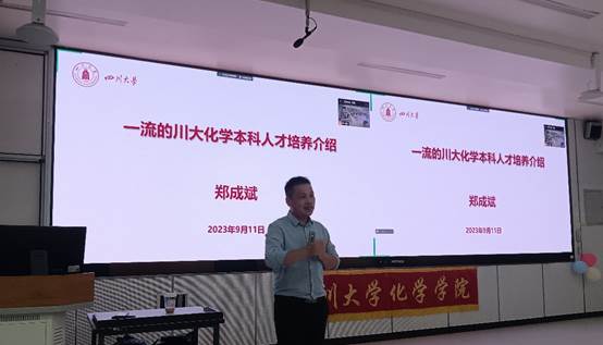 副院长郑成斌教授为2023级本科新生开展主题为“一流的川大化学本科人才培养介绍”的入学教育讲座。本次讲座由党委副书记肖波主持,2023级辅导员及学院2023级全体本科新生参加。