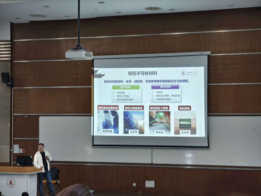 接着,张程老师分享了他在化学领域的研究成果,包括新型能源材料的设计与合成以及高效能量转换机制的探索。他详细解读了探索过程中的一次次尝试与突破,通过具体到分子水平的案例分析,直观而又生动地向同学们展示了化学研究的创新性和实用性。这些成果充分揭示了化学研究的创新性,同时也凸显了其高度的实用性。