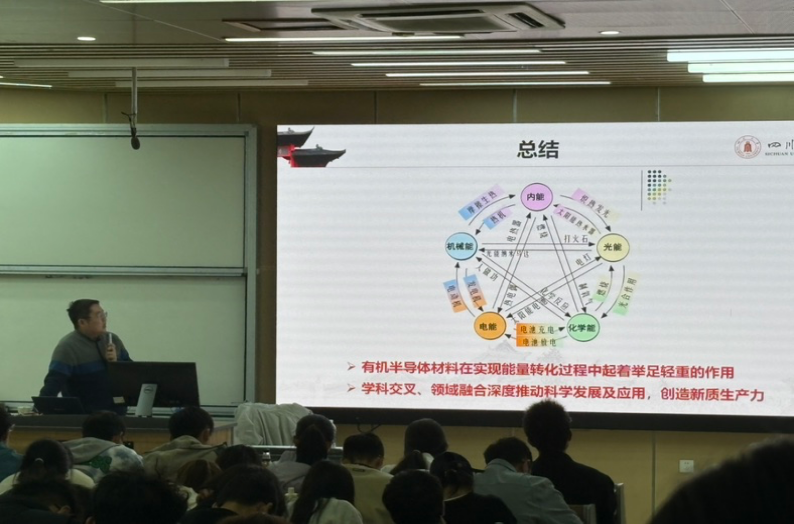 此次讲座不仅让同学们系统了解了有机半导体领域的前沿动态与应用前景,更深刻认识到化学学科在推动未来科技进步中的重要作用,有效激发了大家的科研兴趣与创新探索热情,为学院创新人才的培养注入了强劲动力。