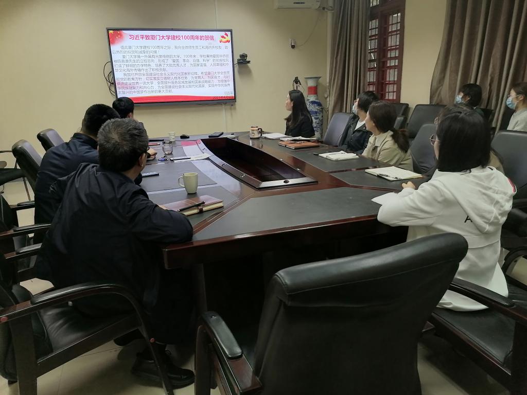 党委召开理论学习中心组(扩大)会议,学习讨论习近平总书记致厦门大学建校100周年贺信,会议由学院党委书记谢均主持。