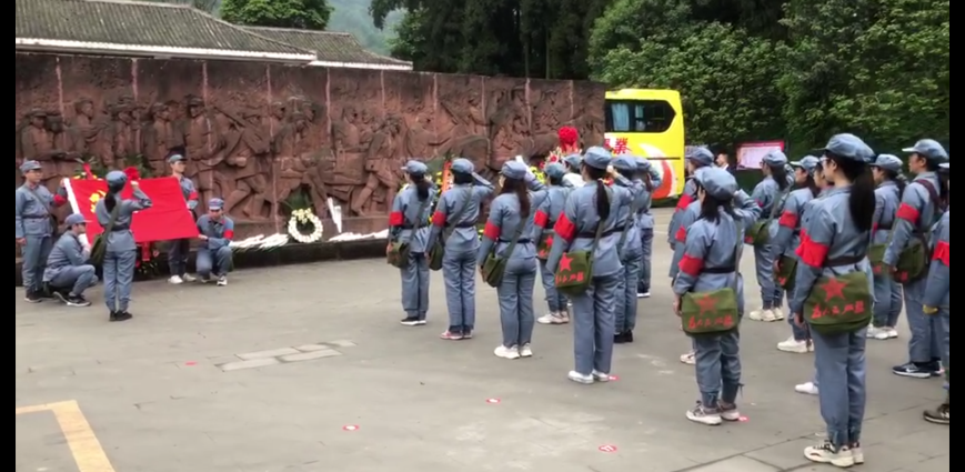 部分党员师生代表赴邛崃红军长征纪念馆开展党史学习教育活动。“红军不怕远征难,万水千山只等闲”,党员同志们换上红军服,学习打绑腿,遵守着装规范和军容军纪。