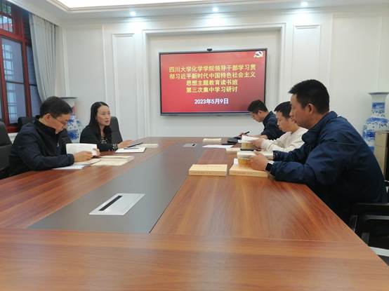 领导干部学习贯彻习近平新时代中国特色社会主义思想主题教育读书班第三次集中研讨在化学馆103会议室举行。全体领导班子参加。研讨会由学院党委书记谢均主持。