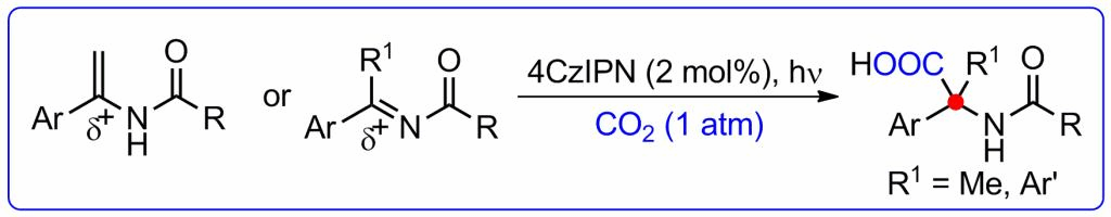91. S.-S. Yan, L. Zhu, J.-H. Ye, Z. Zhang, H. Huang, H. Zeng, C.-J. Li*, Y. Lan*, D.-G. Yu*, Ruthenium-catalyzed umpolung carboxylation of hydrazones with CO2. Chem. Sci. 2018, 9, 4873. (Highlighted by CBG.)