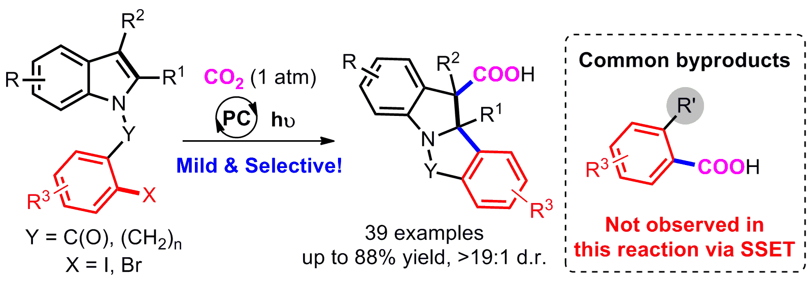 70. W.-J. Zhou,† Z.-H. Wang,† L.-L. Liao, Y.-X. Jiang, K.-G. Cao, T. Ju, Y. Li, G.-M. Cao, D.-G. Yu*, Reductive Dearomative Arylcarboxylation of Indoles with CO2 via Visible-Light Photoredox Catalysis. Nat. Commun. 2020, 11, 3263. († Equal contribution)