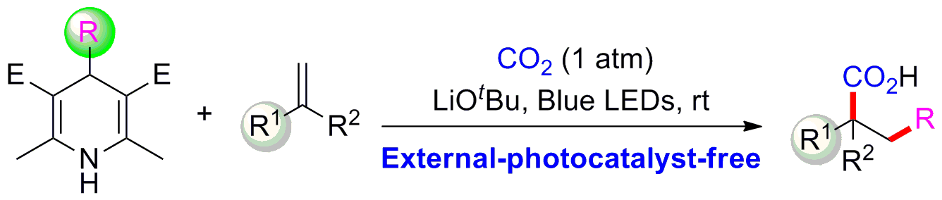79. Q. Fu, Z.-Y. Bo, J.-H. Ye, T. Ju, H. Huang, L.-L. Liao, D.-G. Yu*, Transition metal-free phosphonocarboxylation of alkenes with carbon dioxide via visible-light photoredox catalysis. Nat. Commun. 2019, 10, 3592.