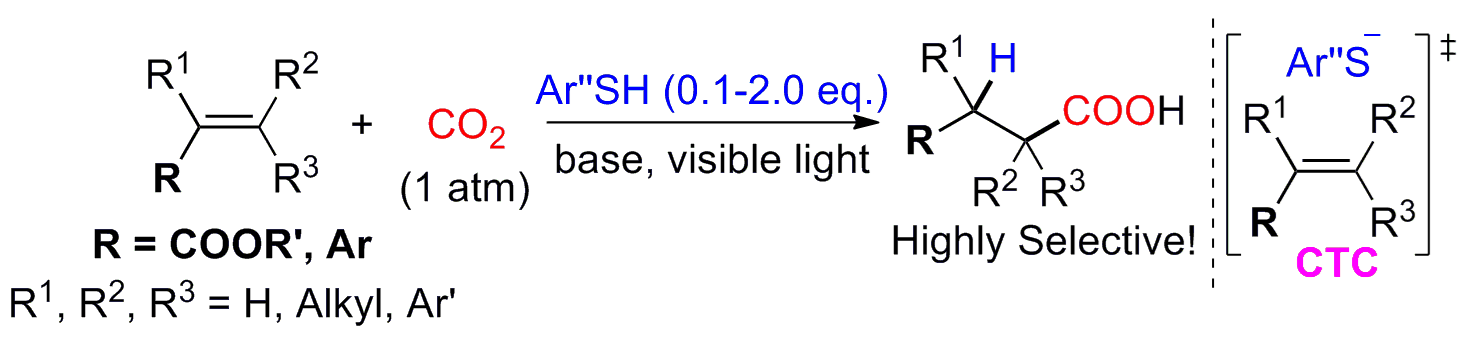105. Y.-Y. Gui†, W.-J. Zhou†, J.-H. Ye, D.-G. Yu*, Photochemical Carboxylation of Activated C(sp3)─H Bonds with CO2. ChemSusChem 2017, 10, 1337. († Equal contribution. Highlight)