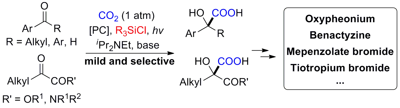 59. G.-M. Cao, X.-L. Hu, L.-L. Liao, S.-S. Yan, L. Song, J. J. Chruma, L. Gong, D.-G. Yu*, Visible-light photoredox-catalyzed umpolung carboxylation of carbonyl compounds with CO2. Nat. Commun. 2021, 12, 3306